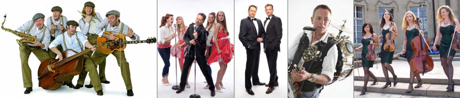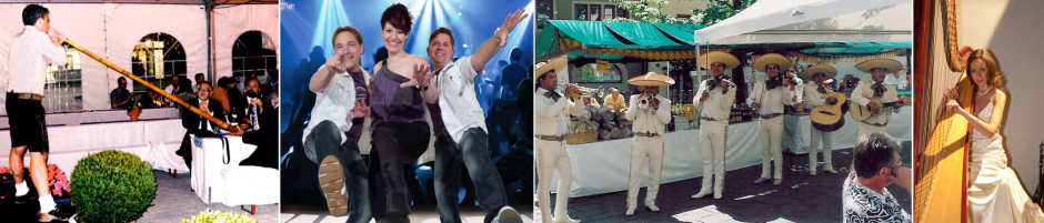 DJs, Alleinunterhalter, Musiker, Sänger, Bands, Orchester, Stars und Sternchen aller Stilrichtungen. Special: Musiker und Sänger unplugged, unverstärkt und mobil, mit und unter Ihren Gästen.